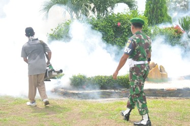 Untuk mencegah terjangkitnya berbagai penyakit yang ditimbulkan oleh gigitan nyamuk yang dapat menimbulkan penyakit malaria maupun demam berdarah dengue DBD yang diakibatkian oleh gigitan nyamuk , tadi siang melaksanakan pengasapan (fogging) lokal dilingkungan perkantoran maupun dilingkungan perumahan anggota Makorem. Kegiatan fogging ini dilaksanakan oleh dinas kesehatan Kabupaten Bangka Tengah dalam hal ini dipimpin langsung oleh Bapak Assadat Budiman selaku kepala bidang pemberantasan penyakit dan penyehat lingkungan (P2pl) di Dinas kesehatan Bangka Tengah. Fogging ini sangat bermanfaat dalam membunuh nyamuk-nyamuk dewasa yang berada di lingkungan Makorem dan sifatnya untuk mencegah agar tidak terserang oleh DBD maupun malaria, jadi tindakan preventif ini sangat baik, dengan prinsip lebih baik mencegah dari pada mengobati.