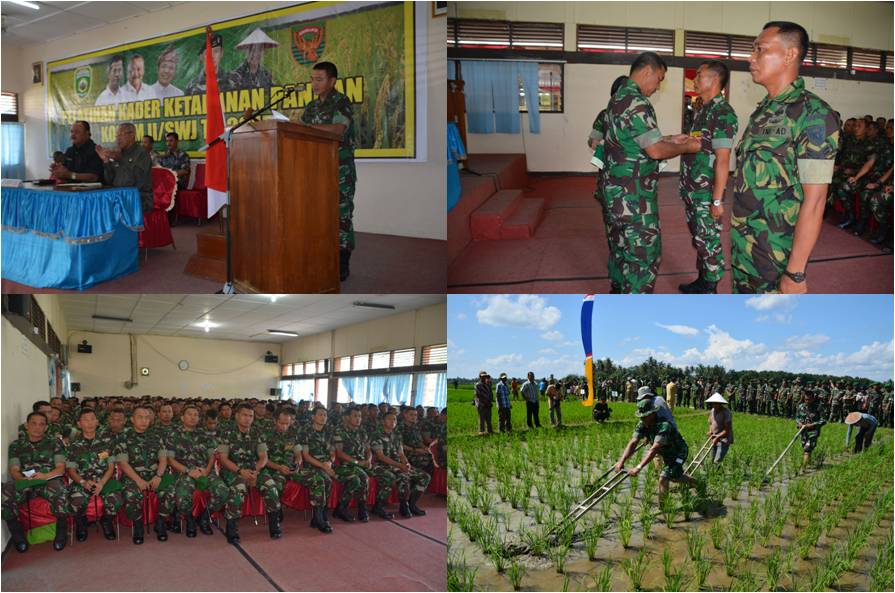 Hal tersebut disampaikan Pangdam II/Swj dalam amanat tertulis yang dibacakan Aster Kasdam II/Swj Kolonel Inf Syaiful Anwar, SE pada upacara penutupan pelatihan kader ketahanan pangan dalam rangka swasembada pangan Kodam II/Swj TA. 2015, Jum’at (16/1/2015) bertempat di Balai Pelatihan Pertanian Martapura – OKU Timur. Pada kesempatan tersebut, Pangdam juga berpesan agar semua materi pelatihan yang telah diterima dapat diaplikasikan dalam pelaksanaan tugas di daerah masing-masing. Harapan Pangdam, keberadaan para kader pelatih, yang sebagian besar para Babinsa mampu memberikan kontribusi positif bagi pembangunan masyarakat, bangsa dan negara, terutama dalam upaya memperbesar produksi pertanian, sehingga program Swasembada Pangan Nasional dalam kurun waktu tiga tahun ke depan benar-benar dapat diwujudkan. Pelatihan kader ketahanan pangan yang berlangsung selama lima hari, sejak tanggal 12 s.d 16 Januari 2015, diikuti oleh 275 peserta yang terdiri dari para Dandim, Kasiter Korem, Pasiter Kodim, Perwakilan Batalyon dan para Babinsa satuan jajaran Kodam II/Swj. Dalam pelatihan tersebut, para peserta pelatihan diberikan materi penyuluhan dan praktek lapangan yang meliputi sistem pola tanam padi legowo 2:1, sistem pola tanam SRI, sistem I pad BO (pola tanam gabungan legowo dan SRI), sistem pola tanam jagung dan kedelai, metoda penggemukan sapi dan pembuatan pupuk organik oleh Jaringan Komunitas Masyarakat Peduli Perikanan, Peternakan dan Pertanian. Tujuan utama dari pelatihan tersebut adalah untuk membantu pemerintah meningkatkan ketersediaan pangan dan meningkatkan ketersediaan produksi pangan nasional, khususnya padi dalam kontek mensejahterakan masyarakat dan mewujudkan ketahanan nasional serta memberikan pemahaman dan motivasi kepada masyarakat untuk mengembangkan komoditi padi yang berbassis teknologi modern. Turut hadir pada kesempatan upacara penutupan, antara lain Kepala Balai Latihan Pertanian Martapura Ir. A Supardan, Tim Fasilitator, Kapolres Oku Timur, Pejabat Pemda OKU Timur serta undangan lainnya.