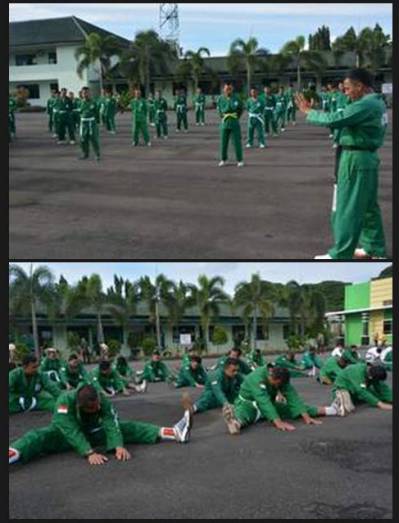 PRAJURIT MAKOREM 043/GATAM MELAKSANAKAN LATIHAN BELA DIRI YONG MOODO.
