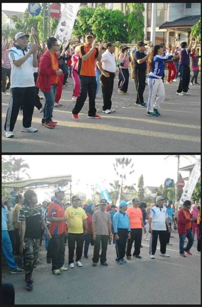 KASDIM MEWAKILI DANDIM 0419/TANJAB MENGIKUTI GERAK JALAN SANTAI DAN SENAM BERSAMA GUBERNUR JAMBI.