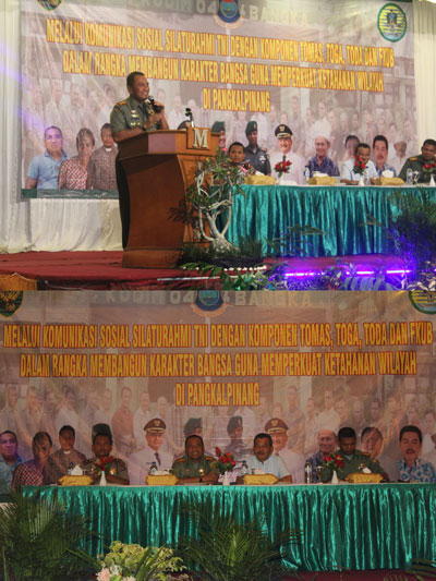 Sekitar150 orang tokoh masyarakat, agama, dan pemuda kota pangkal pinang serta anggota Forum Komunikasi Umat Beragama hadir untuk mengikuti kegiatan Komunikasi Sosial yang digelar oleh Kodim 0413/Bangka. Pada kesempatan ini Danrem menyampaikan beberapa hal yang menjadi keprihatinannya tentang kehidupan social masyarakat Bangka selama kurang lebih 5 bulan menjabat sebagai orang nomor satu di Korem 045/Gaya dimana Wilayah tanggung jawabnya meliputi Kepulauan Bangka Belitung. Beberapahal yang menjadi perhatian Danrem adalah banyak anak-anak usia sekolah yang putus sekolah karena lebih memilih untuk kerja di tambang timah dan banyaknya masyarakat yang menjual atau mengadaikan tanah miliknya karena terlilit hutang Bank karena sudah tak mampu lagi membayar angsuran kreditnya. Hal ini mencerminkan merosotnya kehidupan social di tengah-tengah masyarakat serta menurunnya kehidupan ekonomi. Kolonel Murlim juga mengajak kepada para tokoh agar memberikan penekanan dan himbauan pada masyarakat tentang pentingnya pendidikan serta merubah mind set agar beralih kekehidupan pertanian atau peternakan. Himbauan ini karena menurut Danrem Bangka Belitung memiliki alam yang cukup kaya serta subur sehingga dapat dimanfaatkan pada sector pertanian dan peternakan. Lebih lanjut Danrem Juga menyampaikan apabila ada anggotanya yang melaksanakan hal yang melanggar serta diluar dari pada tugasnya sebagai anggota TNI agar tidak segan-segan melaporkan kepadanya.