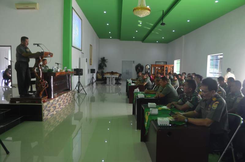 Pelaksanaan kegiatan ini diikuti oleh Para Kasi dan Pasi Korem 043/Gatam, Dan / Ka Satdisjan Jajaran Korem, Dandim dan Pasi serta Danramil Kodim 0410/KBL, Ka Balak Korem, Para Bati dan Babinsa Kodim 0410, serta Danki, Pasi Yon dan Bintara dari Yonif 143/TWEJ. Adapun tujuan kegiatan ini, adalah untuk monitoring dan evaluasi terhadap Bujukin Binter, metode Binter, Sisrendal Binter, Ketatalaksanaan Binter, Binter sebagai fungsi TNI AD dan Litbang penyelenggaraan Komsos kreatif Satkowil dan Satnonkowil, dikaitkan dengan penyelenggaraan Binter di wilayah. Mewakili Komandan Korem 043/Gatam, Pjs Kasi Ter Korem 043/Gatam, Mayor Inf Prabowo membacakan sambutan tertulis Komandan Korem bahwa kegiatan pembinaan kewilayahan yang dilaksanakan oleh Satkowil maupun Satnonkowil di wilayah Korem 043/Gatam dapat dilaksanakan dengan baik, sesuai dengan rencana program kerja yang telah ditentukan oleh tiap-tiap satuan maupun Program Kerja Korem 043/Gatam. Pemberdayaan Wilayah pertahanan di darat tersebut, dilaksanakan secara terus-menerus dan berkesinambungan sesuai ketatalaksanaan peraturan perundang-undangan yang berlaku. Dijelaskan pula Danrem dalam sambutannya bahwa sebagai Satuan Komando Kewilayahan dan Satuan Komando Non Kewilayahan serta sebagai bagian dari gelar kekuatan pertahanan negara di daerah/wilayah, Satuan Jajaran Korem 043/Gatam senantiasa dituntut mampu menyiapkan potensi kewilayahan menjadi kekuatan kewilayahan dalam rangka Sishanneg, yang diselenggarakan melalui pemberdayaan wilayah pertahanan darat. Sebagai upaya dalam mendukung tugas tersebut, prajurit Korem 043/Gatam untuk selalu menjalin komunikasi yang harmonis dengan seluruh komponen yang ada di wilayah Provinsi Lampung, baik antar sesama aparat TNI, Pemerintah Daerah dan Polri maupun dengan komponen masyarakat. Dengan upaya tersebut, akan timbul hubungan yang sinergis antar segenap komponen masyarakat dengan prajurit TNI AD secara terus - menerus, guna mendukung terwujudnya stabilitas keamanan di wilayah yang partisipasif dan kondusif, serta mewujudkan rasa aman dan nyaman bagi segenap warga masyarakat, yang bermuara dapat memberikan ruang bagi terselenggaranya dinamika pembangunan di daerah dalam rangka mewujudkan kesejahteraan warga masyarakat secara menyeluruh, terang Danrem secara tertulis.