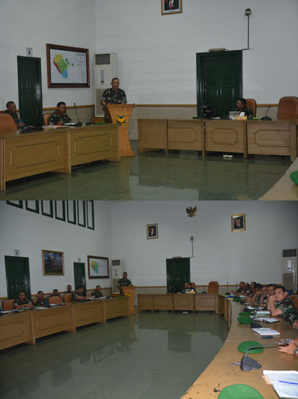 Palembang, (Pendam II/Swj) Kasdam II/Swj Brigjen TNI Komaruddin Simanjuntak, S.I.P., memimpin rapat dalam rangka kesiapan Kodam II/Swj menerima Wasrik BPK RI TA. 2015 bertempat di gedung Gatot Subroto Makodam II/Swj. (25/05/15)