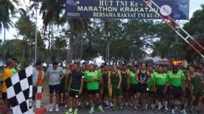 Minggu pagi pukul 06.00.wib kurang lebih 500 orang pelari Krakatau 10 K yang terdiri dari masyarakat, anggota TNI dan Pegawai Pemkab Kabupaten Lamsel ikut meramaikan Lari Krakatau 10 K yang dilepas langsung oleh Kepala Dinas Pariwisata yang mewakili Bupati Lampung Selatan didampingi Danrem 043/Gatam dengan Start dan Finish di Hotel Elty Kalianda. Kali pertama di Kabupaten Lampung Selatan dilaksanakan Lomba Lari Krakatau 10 K besar harapan Pemprov Kab. Lamsel dalam ajang Krakatau 10 K dapat mencari bibit atlet unggulan yang bisa diambil melalui kegiatan ini. Tak luput ibu-ibu persit ikut meramaikan kegiatan lari karakatau 10 K ini. Demikian Kegiatan Lari Krakatau 10 K yang dilaksanakan di Hotel Elty Kalianda resor dengan juara pertama : Arief Riswan pelajar Smu dari Tanjung Bintang , kedua Widianto dari Tanjung bintang, Ketiga Sersan Alaudin, Sersan Agustinus, Walidi, Arief, dan Bayu semua dari anggota Batalyon 143/Twej. Kegiatan ini dilaksanakan dengan tertib dan aman.