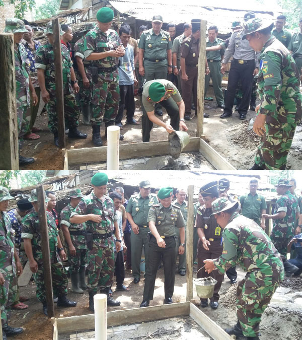 Jambi, (Kodim 0419/Tanjab) Kuala Tungkal, Komandan Kodim 0419/Tanjab Letnan Kolonel Inf Aqsha Erlangga, S.H meletakkan batu pertama dalam karya bakti TNI pencanangan program pembangunan satu juta jamban yang dilaksanakan bertempat di Kelurahan Talang Babat Kecamatan Muara Sabak Barat Kabupaten Tanjab Timur, Senin (27/12)