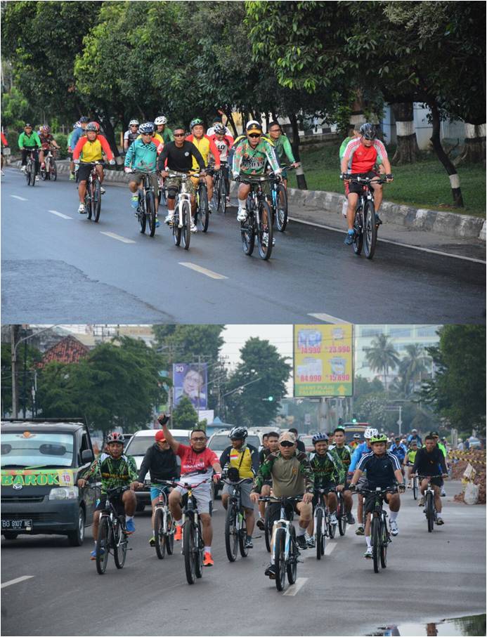 Palembang, (Pendam II/Swj). Pangdam II/Swj Mayjen TNI Purwadi Mukson, S.I.P., didampingi Kasdam II/Swj Brigjen TNI Marga Taufiq, S.H., M.H., bersama para pejabat Kodam dan seluruh Pamen jajaran Kodam II/Swj wilayah Garnizun Palembang, Jum’at (3/6/2016) melaksanakan olahraga bersepeda santai atau Gowes bersama menyusuri Kota Palembang.