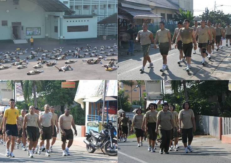 Kegiatan olah raga bersama diawali dengan pemanasan, senam kerja dan senam perut, serta dilanjutkan dengan olah raga jalan kaki selama sekitar 30 menit, yang mengambil route jalanan umum di seputaran lingkungan Makodam II/Swj sejauh 3,2 Km. Walaupun dalam kondisi berpuasa, para prajurit tetap bergembira dan bersemangat dalam berolah raga. Karena saat berpuasa kita harus tetap melakukan aktifitas fisik seperti biasanya, agar organ – organ pencernaan tetap berfungsi normal dan mendapatkan aliran darah yang lancar. Kapendam II/Swj Kolonel Arh Syaepul Mukti Ginanjar,S.IP usai olah raga mengatakan bahwa bagi prajurit TNI, olah raga merupakan kebutuhan. Dengan tubuh yang selalu fit dan bugar, maka seorang prajurit akan mampu melaksanakan tugas-tugas rutinnya dengan baik, serta tetap mampu melaksanakan puasa dengan baik. Selain itu, imbuh Kolonel Syaeful bulan puasa bukan waktunya untuk bermalas-malasan dalam melaksanakan tugas. Sebaliknya, bulan puasa harus menjadi momentum pembuktian diri, kalau prajurit dan PNS Kodam II/Swj selalu tetap dalam kondisi fit dan bugar. Bulan puasa harus diisi dengan kegiatan yang positif dan produktif. Sementara itu, Staf Ahli Pangdam II/Swj bidang Ilpengtek Kolonel Inf Ranto P Silaban ketika bertindak sebagai pengambil apel pagi menekankan agar bulan puasa dimanfaatkan untuk meningkatkan dan memperbanyak amal dan perbuatan yang baik serta membangun sikap toleransi, saling menghormati dan menghargai. “Bagi yang non muslim agar menghormati rekan dan saudaranya umat muslim yang sedang menjalankan ibadah puasa”, ujarnya. Kolonel Inf Ranto P Silaban juga mengingatkan seluruh prajurit dan PNS Kodam II/Swj agar tetap waspada terhadap bangkitnya kembali paham komunis dilingkungan masyarakat, utamanya yang menyasar kepada generasi muda, yang notabene masih mencari jati diri, sehingga muda dipengaruhi. Prajurit TNI AD harus menjadi benteng dan pengawal ideologi Negara, Pancasila. “Ideologi komunis sangat bertentangan dengan ideologi Pancasila dan PKI telah berulangkali melakukan pengkhianatan kepada pemerintah, bangsa dan Negara”, pungkasnya.