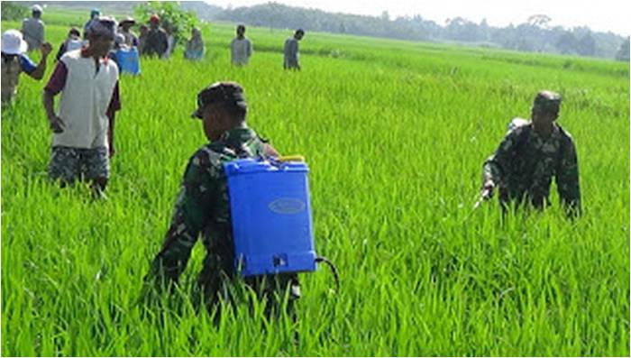 BABINSA KOREM 043/GATAM LAMPUNG BANTU PETANI SEMPROT HAMA WERENG