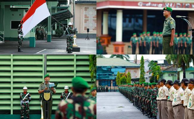 Hal tersebut, disampaikan Pangdam II/Swj Mayjen TNI Sudirman, S.H, M.M melalui Perwira Ahli Pangdam II/Swj bidang Sosial Budaya Kolonel Inf Afianto ketika bertindak sebagai Inspektur Upacara pada upacara Bendera Mingguan, Senin (14/11/2016) bertempat di Lapangan Upacara Makodam II/Swj, Palembang. “Dalam kehidupan bermasyarakat antar umat beragama harus saling menghormati dan menghargai. Semangat hidup bertoleransi ini harus terus kita jaga dan kita pelihara sebagai bangsa yang majemuk, plural dan serba bhineka. Dalam konteks ini, prajurit dan PNS Kodam II/Swj harus mampu menjadi teladan, pelopor dan pemersatu”, tandasnya. Pada bagian lain arahannya, terkait Pilkada serentak di beberapa wilayah Kodam II/Swj, Pangdam II/Swj juga kembali mengingatkan kepada seluruh prajurit dan PNS Kodam II/Swj untuk tetap memegang teguh sikap netralitas TNI. “Jangan ada pelanggaran sekecil apapun dan jangan terlibat kegiatan politik praktis yang dapat merugikan pribadi masing-masing maupun satuan. TNI berkomitmen untuk tetap bersikap netral, senetral-netralnya. Tugas TNI adalah menjaga stabilitas keamanan, agar seluruh tahapan Pilkada serentak berjalan dengan aman, damai dan lancar, tidak ada gejolak maupun konflik’, tandasnya. Selanjutnya, terkait dengan musim penghujan dan tingginya intensitas hujan pada akhir-akhir ini, sehingga mengakibatkan banjir dan tanah longsor di beberapa daerah, serta menimbulkan kerugian personel dan materiil, Pangdam II/Swj mengingatkan kepada seluruh prajurit dan PNS Kodam II/Swj serta warga masyarakat untuk mewaspadai terjadinya bencana alam yang sewaktu-waktu dapat terjadi dan dapat mengancam keselamatan jiwa maupun harta benda. Upacara bendera mingguan yang berjalan dengan tertib dan khidmat, ditandai dengan pengibaran bendera merah putih, pembacaan teks Pancasila dan pengucapan Sapta Marga. Turut hadir pada kesempatan tersebut, para Staf Ahli Pangdam II/Swj, para Asisten Kodam dan para Kabalak di lingkungan Makodam II/Swj serta segenap prajurit dan PNS Kodam II/Swj.