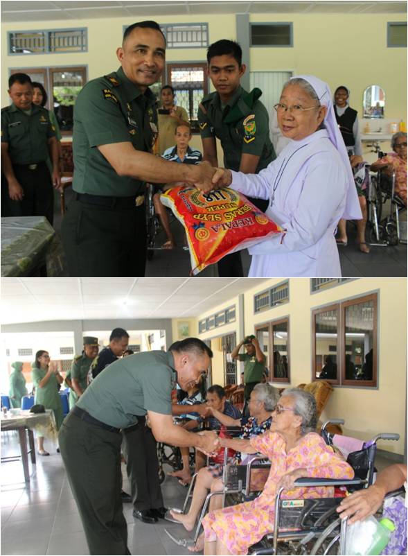 Komandan Korem 045/Garuda Jaya Kolonel Infanteri Tjaturputra Gunadi Genah, S.Sos., M.M. memimpin kegiatan anjangsana(kunjungan) Jumat (6/ 1/ 17) ke panti jompo Panti Bhakti Kasih "Siti Anna" Kel. Selindung Baru Kec. Gabek Kota Pangkalpinang.