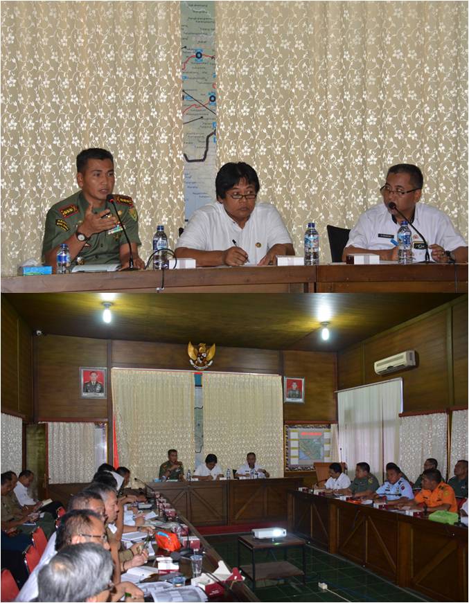 Palembang, (Penrem 044/Gapo) Komandan Korem 044/Gapo Kolonel Inf Kunto Arief Wibowo, S.IP. memimpin rapat koordinasi (Rakor) persiapan apel kesiapsiagaan personel dan peralatan penanggulangan kebakaran hutan dan lahan (Karhutla) Provinsi Sumatera Selatan tahun 2017 di Ruang Rapat Makorem 044/Gapo Jln. Jend. Sudirman KM 4,5 Palembang, Senin (13/2/17).