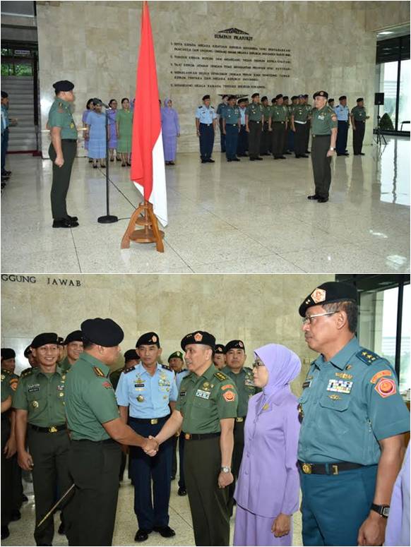 Hal tersebut disampaikan Panglima TNI Jenderal TNI Gatot Nurmantyo pada upacara laporan korps kenaikan pangkat 17 Perwira Tinggi TNI bertempat di Ruang Hening Mabes TNI, Cilangkap, Jakarta Timur, Senin (24/7/2017). Menyikapi hal tersebut, Panglima TNI memerintahkan kepada seluruh perwira TNI dan khususnya unit-unit kerja satuan TNI untuk menuangkan pemikiran-pemikiran cerdasnya guna penguatan peran dan tugas TNI dalam menjaga stabilitas keamanan, updating strategi penyelesaian masalah dengan pendekatan pembangunan infrastruktur dan kesejahteraan di seluruh tanah air. “Strategi tersebut tentu akan menjadi barometer keberhasilan TNI yang harus dirumuskan ke depan, dengan tetap mengacu kepada visi pemerintah dalam Nawacita maupun pokok-pokok Kebijakan Panglima TNI tahun 2017,” ujar Jenderal TNI Gatot Nurmantyo. Panglima TNI menyatakan bahwa apabila harapan itu terwujud maka kepercayaan rakyat kepada TNI juga akan semakin tinggi sebab TNI mampu membuktikan diri dapat membantu penyelesaian berbagai persoalan bangsa. “Reputasi terbaik yang dimiliki TNI telah mengundang keinginan lembaga atau instansi lain untuk bersinergi dan terlibat dalam penyelesaian berbagai permasalahan bangsa. Bagi TNI apapun tugas yang menyangkut persoalan bangsa merupakan panggilan tugas dan pengabdian. Kita harus memaknai bahwa keinginan bersinergi dengan TNI pada penyelesaian berbagai persoalan bangsa, sesungguhnya merupakan bentuk kepercayaan kepada TNI,” ujar Panglima TNI. Mengakhiri amanatnya, Panglima TNI Jenderal TNI Gatot Nurmantyo menegaskan kembali bahwa kepercayaan masyarakat itu harus dijaga dengan baik sebagaimana TNI setia menjaga bangsa dan negara. “Semoga kesetiaan itu tidak pernah goyah, sebagaimana kita setia kepada NKRI, setia kepada Konstitusi, setia kepada Presiden RI. Apapun yang terbaik bagi rakyat adalah terbaik bagi TNI, dan dengan segenap kemampuan, TNI senantiasa akan melaksanakan amanah dan tugas yang diembankan oleh negara dan rakyat,” tutup Panglima TNI. Adapun 17 Perwira Tinggi (Pati) TNI yang naik pangkat, terdiri dari enam Pati TNI AD yaitu Letjen TNI Yoedhi Swastono (Sesmenko Polhukam), Mayjen TNI Wawan Kustiawan, S.H., (Staf Ahli Bidang SDM dan Teknologi Kemenko Polhukam), Mayjen TNI Irwansyah, M.A.,M.Sc., (Staf Ahli Bidang Sosbud BIN), Brigjen TNI Irham Waroihan (Danrem 091/Asn Samarinda) Kodam VI/Mlw, Brigjen TNI Bambang Ismawan, S.E.,M.M., (Danrem 121/Abw Sintang) Kodam XII/Tpr, dan Brigjen TNI Maruli Simanjuntak, S.E., Sc., (Wadan Paspampres). Tujuh Pati TNI AL yaitu Laksda TNI Maheranto, S.E., M.M. (Wairjen TNI), Laksda TNI Dr. Drs. Ir. Suyono Thamrin. M. Eng.Sc (Ketua Lembaga Pengembangan Pendidikan dan Penjamin Mutu Unhan), Mayjen TNI Mar Purwadi, M.Tr (Han) (Pa Sahli Tk. II Sosbud Sahli Bid. Sosbudkum HAM dan Narkoba Panglima TNI), Brigjen TNI Mar Joko Supriyanto, S.H (Kapuspamhar Kawasan Bainstranas Kemhan), Laksma TNI Imam Suprayitno, S.E.,M.Tr (Han) (Karo Gelar Tanda Jasa & Kehormatan Setmilpres Kemsetneg), Laksma TNI (E) Gunawan, S.T.,M.Tr (Han) (Kadissenlekal) dan Laksma TNI Guramad Sabirin, S.H., M.H. (Waorjen TNI). Sedangkan empat Pati TNI AU yaitu Marsda TNI Donny Ermawan T.,M.D.S., (Waka Bais TNI), Marsma TNI Dr. Ir. Gita Amperiawan, M.Sc., (Dirtekindhan Ditjen Pothan Kemhan), Marsma TNI Trusta Yuniarta, (Kadiswatpersau) dan Marsma TNI Syamsunasir, S.Sos.,M.M. (Irben Itjen TNI).