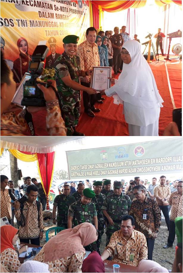 Penrem 044/Gapo, 27 Juli 2017 Kodim 0404/MPP bekerjasama dengan BKKBN dan Pemkot Prabumulih menggelar Bhakti Sosial TNI Manunggal KB Kes (TMKK) dan Pencanangan Kampung KB di kota Prabumulih 27/7/17.