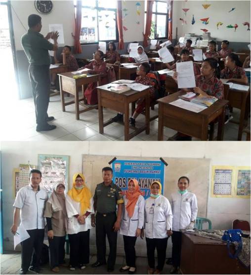 Penrem 044/Gapo Guna mendukung program pemerintah di bidang kesehatan dalam menanggulangi penyakit difteri, Serda Suraidi Babinsa Koramil 418-06/Kamboja Kodim 0418/Palembang bersama Puskesmas Kemuning Kota Palembang melaksanakan sosialisasi penyakit difteri serta pemberian imunisasi difteri kepada siswa siswi SDN 162 Jln. R. Sukamto Lrg Rawa Bening RT.02 RW.01 Kel. Pipa Reja Kec. Kemuning Kota Palembang, Jumat (23/3/2018).