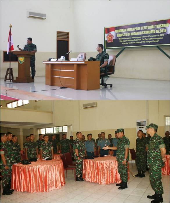 Kegiatan Penataran Teritorial Tersebar ini diselenggarakan selama 4 hari, mulai tanggal 26 s.d 29 Maret 2018 dan diikuti sebanyak 100 Prajurit TNI dari tiga matra, baik TNI AD, TNI AL dan TNI AU yang berada di wilayah Garnizun Palembang. Adapun Tema yang diusung dalam Penataran Kemampuan Teritorial kali ini adalah “Melalui Penataran Kemampuan Teritorial Tersebar TA. 2018, Kita Jaga Komitmen Netralitas TNI dan Kemanunggalan Aparatur Teritorial Sat Kowil TNI Dengan Rakyat”. Dalam sambutannya, Pangdam II/Swj Mayjen TNI AM. Putranto, S. Sos., mengatakan bahwa, penyelenggaraan Penataran Kemampuan Teritorial Tersebar ini merupakan salah satu upaya Pimpinan untuk memberikan pembekalan dan pengetahuan dalam rangka meningkatkan kemampuan Aparat Teritorial (Apter) TNI dalam menyiapkan Ruang, Alat dan Kondisi Juang yang tangguh. Menurut Mayjen Putranto, kegiatan penataran yang diselenggarakan penting dilakukan mengingat tugas Satuan Komando Kewilayahan TNI tidak akan pernah terlepas dan selalu akan dipengaruhi oleh kondisi geografi, demografi dan kondisi sosial yang harus tetap diperjuangkan untuk dijadikan Ruang, Alat dan Kondisi Juang yang tangguh dan mantap dengan didukung oleh seluruh kekuatan sosial, sehingga terbentuk pola pertahanan negara yang defensif strategis. Dalam penataran ini para peserta akan dibekali dengan materi tentang ; Netralitas TNI, Pemanfaatan Media Sosial (Medsos), Serbuan Teritorial, Sikap Teritorial, Ketatalaksanaan Binter dan Lima Kemampuan Teritorial, Sikap yang diberikan oleh Pembimbing/Penatar.diantaranya, Aster Kasdam II/Swj Kolonel Inf Rionardo, Kapendam II/Swj Letkol Inf Choiril Anwar, Kapten Inf Hermanto, Kapten Inf Rusman, Kapten Inf Widodo dan Lettu Inf Pringgo.