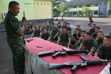 Penrem 043/Gatam Bandar Lampung, Prajurit Korem 043.Gatam menerima pengetahuan senjata ringan pada kegiatan Minggu Militer yang dilaksanakan pada tanggal 26 s/d 30 Maret 2018 bertempat di lapangan apel Makorem 043/Gatam, yang langsung di berikan oleh Pelda Prasetyo Anggota Denpal Lampung.