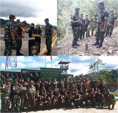 Kunjungan orang nomor satu di Kodam II/Sriwijaya beserta rombongan ini dalam rangka pengendalian dan pengawasan tugas operasi Satgas Pamtas RI-Malaysia Yonif 141/AYJP dengan menggunakan pesawat Cassa 212 TNI AU A–2111 yang dipiloti Mayor Pnb M.Arief, S.Sos. Setibanya di Bandara Yuvai Semaring, Long Bawan, Kec. Krayan Induk, Kab. Nunukan, rombongan disambut Dandim 0911/Nunukan Letkol Inf Czi A. Arif, Danramil 0911/09 Kapten Inf Laety, Camat Krayan Induk Bapak Helmi Pusdiaslikar, S.IP, Kanit Reskrim Polsek Krayan Induk Aipda Tinas Padan, Ketua Adat Krayan Tengah Bapak Daniel Sinau, Wakil Ketua Adat Besar Bapak Miskanter, S.H. Selanjutnya Pangdam beserta rombongan menuju ke Pos Koki Satgas Pamtas 141/AYJP dan menerima jajar kehormatan dilanjutkan melaksanakan pengecekan ke Pos Koki serta menyaksikan profil dan menerima Paparan Dansatgas. Dalam kesempatan tersebut Pangdam II/Sriwijaya Mayjen TNI AM. Putranto, S.Sos. memberikan arahan dan meminta penambahan HP Satelit, perbaikan Hellypad dan pengadaan perahu untuk patroli. “pesan Pangdam”. Selain itu Pangdam mengatakan, “Kita sangat bangga dengan Satuan 141/AYJP karena meskipun wilayahnya sangat luas tetap bisa melaksanakan Tupoksi,” aku Jenderal Bintang Dua ini. Pangdam juga mengharapkan agar semua prajurit tetap menjaga kesehatan dalam melaksanakan tugas dan tetap semangat dalam melaksanakan tugas di wilayah perbatasan. Juga para prajurit bisa menciptakan inovasi-inovasi yang positif untuk membantu menambah penghasilan masyarakat di Wilayah Satgas Pamtas. ”harapnya”. Selanjutnya Pangdam meminta, ”Para prajurit selalu bersyukur karena sampai saat ini masih bisa menjalankan tugas dan menekankan kepada prajurit untuk selalu berinteraksi dengan masyarakat sekitar agar tercipta suasana yang harmonis.,” Imbuh Mayjen TNI Putranto. Sehabis melaksanakan sholat Jumat Pangdam beserta rombongan menuju Pos Long Midang dan disambut oleh Danpos Long Midang, personel Askar Tentara Malaysia yg bergabung di Pos Long Midang, Perwakilan Veteran, untuk mengecek Patok pertama perbatasan di Ba’kelalan. Selanjuytnya meneruskan perjalanan ke Patok pertama di Ba’kelalan dan melaksanakan foto bersama. Pangdam II/Sriwijaya Mayjen TNI AM. Putranto, S.Sos. sangat bangga dengan kekompakan antara prajurit TNI dan Askar Malaysia. “Jadikan momentum di tugas ini sebagai acara ajang silaturahmi antara TNI, Askar Malaysia dan para Veteran, pelaksanaan tugas sudah 7 bulan berjalan dan tinggal sekitar 2 bulan lagi, tinggalkan kenangan yang baik untuk masyarakat,” sebut Mayjen TNI Putranto.