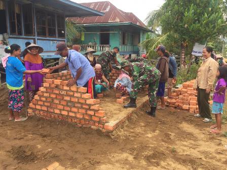 TINGKATKAN KEAMANAN KAMPUNG, SATGAS TMMD KODIM 0418/PALEMBANG BANGUN POSKAMLING