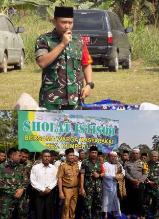 Pendam II/Swj JAMBI, - Komandan Kodim 0415/Bth Letkol Widi Rahman seusai mengikuti Sholat Istisqo yang bertempat di lapangan bola kaki Desa Sipin Teluk Duren Kecamatan Kumpeh Ulu Kabupaten Muaro Jambi, Rabu (14/8/19) menghimbau kepada masyarakat untuk tidak sembarang membakar hutan dilahan yang kosong.