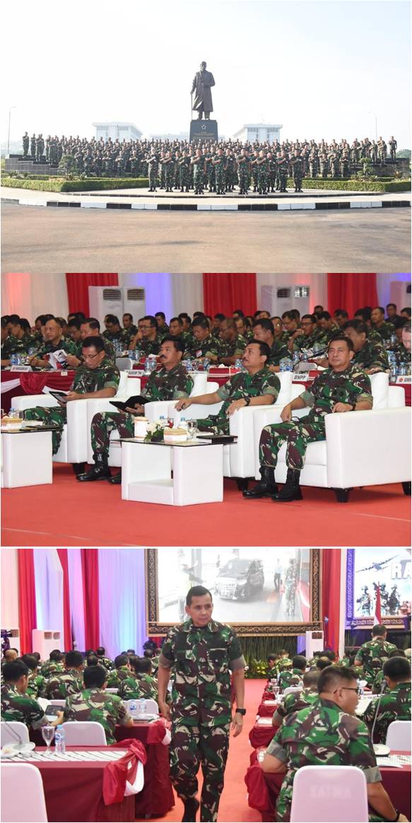 Rapim TNI Tahun 2020 tersebut dibuka langsung oleh Panglima TNI Marsekal TNI Hadi Tjahjanto, S.I.P., bertempat di GOR Ahmad Yani, Mabes TNI Cilangkap, Jakarta Timur, Rabu (29/1/2020). Dalam Rapim TNI kali ini, ada tiga hal utama yang menjadi penegasan Panglima TNI, diantaranya ; evaluasi program kerja 2019, sosialisasi rencana program kerja 2020 dan pembahasan isu-isu aktual serta kemungkinan tantangan yang harus dihadapi. Selain itu, seluruh pejabat teras TNI yang hadir ikut memberikan informasi aktual seperti tantangan yang dihadapi Indonesia ke depan. Salah satu tantangan terkini yang mungkin dianggap menonjol adalah pelaksanaan Pilkada 2020 yang mulai digelar September dan Pekan Olahraga Nasional (PON) di Papua. Rapim TNI tahun ini juga membahas prosedur dan mekanisme kerja tiga Badan Pelaksana Pusat baru TNI. Ketiga Badan Pelaksana Pusat itu adalah Komando Gabungan Wilayah Pertahanan (Kogabwilhan), Pusat Informasi Maritim (Pusinfomar) dan Komando Operasi Khusus (Koopssus). Setelah kegiatan, Panglima TNI juga memberikan pokok-pokok kebijakan untuk dijadikan dasar dalam membuat program kerja tahun 2020. Panglima TNI berharap Rapim TNI kali ini bisa berjalan dengan baik sebagai upaya pengoptimalan jalinan komunikasi dan meningkatian soliditas dan profesionalitas TNI. "Saya minta manfaatkan forum ini untuk menguatkan jalinan komunikasi yang harmonis guna menyampaikan gagasan cemerlang, menyamakan persepsi, dan memantapkan soliditas dan profesionalitas TNI sehingga kita dapat optimal mencapai tugas pokok TNI," pungkasnya. Sebelumnya, TNI bersama dengan Polri menggelar Rapat Pimpinan (Rapim) TNI-Polri tahun 2020, di GOR Ahmad Yani Mabes TNI, Cilangkap, Jakarta Timur, Selasa (28/1/2020). Dalam Rapim, TNI dan Polri sekaligus menyatukan kesamaan rencana tindakan kontigensi kejadian tahun 2020. ------- o0o --------