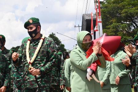 Dalam rangkaian kegiatan Sertijab tersebut, Pangdam II/Swj Mayjen TNI Irwan, S.I.P., M. Hum., melaksanakan silaturahmi dengan segenap prajurit dan PNS serta anggota Persit KCK jajaran Kodam II/Swj bertempat di lapangan Makodam II/Swj Palembang, Selasa (4/8/2020). Dalam kesempatan silaturahmi yang berlangsung dalam suasana kebersamaan tersebut, Mayjen TNI Irwan menyampaikan kesan dan pesannya selama kurang lebih 2 tahun menjabat sebagai Pangdam II/Swj sekaligus berpamitan. “Tanpa terasa, sudah 2 tahun lebih saya mengemban tugas dan tanggung jawab jabatan sebagai Pangdam II/Swj. Dalam rentang waktu tersebut, saya menyadari masih belum banyak yang dapat saya perbuat bagi kemajuan Kodam II/Swj. Namun demikian, saya telah berupaya semaksimal mungkin untuk meningkatkan kesiapan operasional satuan, profesionalisme prajurit, kesejahteraan personel serta tertib administrasi dan hukum”, ungkap Mayjen TNI Irwan. “Dengan bantuan dan dukungan seluruh staf dan jajaran, kesemuanya itu dapat terlaksana dengan baik dan lancar, tanpa ada hambatan yang berarti. Atas bantuan dan dukungan tersebut, saya mengucapkan terima kasih. Saya berharap, bantuan dan dukungan itu dapat terus berlanjut pada pengganti saya nantinya”, ujarnya. Pangdam berpesan agar hal-hal yang sudah baik selama ini dapat terus dipelihara dan lebih ditingkatkan, membangun hubungan yang harmonis, menjaga kekompakan dan soliditas, sehingga Kodam II/Swj akan semakin maju, profesional dan siap menghadapi dinamika tantangan tugas. “Dengan demikian, Kodam II/Swj akan dapat memberikan yang terbaik kepada masyarakat, bangsa dan negara tercinta”, ujarnya. "Sekali lagi jaga silaturahmi, kebersamaan dan kekompakan. Saya bangga, saya senang dan saya sayang dengan kalian semua. Jaga nama baik Kodam II/Swj", jelas Mayjen TNI Irwan. Diakhir sambutannya, Mayjen TNI Irwan beserta istri dan keluarga mohon diri, sekaligus mohon do’a, agar sekeluarga senantiasa mendapatkan bimbingan dan petunjuk dari Tuhan Yang Maha Kuasa. “Sebagai manusia biasa yang tak luput dari kekhilafan dan kekurangan, saya sekeluarga mohon ma’af apabila ada hal-hal yang kurang berkenan selama ini”, ucapnya. Usai memberikan sambutan, Pangdam II/Swj Mayjen TNI Irwan dan Ketua Persit KCK PD II/Swj Ny. Rina Irwan bersama Kasdam II/Swj dan seluruh pejabat teras Kodam II/Swj beserta Dan/Kabalakdam langsung menuju Gedung Sudirman untuk memberikan arahan. Pada kesempatan tersebut, Pangdam II/Swj juga meresmikan Sekolah TK Kartika Sriwijaya II-2 Palembang dengan ditandai penandatanganan Prasasti oleh Pangdam II/Swj. Acara dilanjutkan dengan pemberian cinderamata kepada Pangdam II/Swj beserta ibu, masing-masing dari Kasdam II/Swj, para Danrem, para Kabalakdam II/Swj dan para Dansat jajaran Kodam II/Swj. Kemudian, pemberian tali asih dari Pangdam II/Swj Mayjen TNI Irwan kepada Kasdam II/Swj Brigjen TNI Muhammad Zamroni dan beberapa perwakilan pejabat Kodam II/Swj. Selanjutnya, prosesi pelepasan dan pamitan Mayjen TNI Irwan dan Istri diawali dengan pengalungan bunga dan pemberian bunga tangan yang dilakukan oleh Kasdam II/Swj beserta Istri, sebagai wujud penghargaan segenap keluarga besar Kodam II/Swj atas kepemimpinan serta dedikasi dalam pelaksanaan tugas selama ini. Kemudian Mayjen TNI Irwan dan istri melewati barisan Prajurit dan PNS Kodam II/Swj yang berdiri saling berhadapan di lapangan Makodam II/Swj. Selanjutnya, Pangdam dan Istri melewati barisan pedang pora. Sampai di pintu gerbang penjagaan, selanjutnya Pangdam menerima laporan jajar kehormatan. Usai menerima prosesi jajar kehormatan, Mayjen TNI Irwan beserta istri langsung meninggalkan Makodam II/Swj. Kegiatan pelepasan ini diwarnai dengan rasa haru yang mendalam oleh seluruh warga Kodam II/Sriwijaya.
