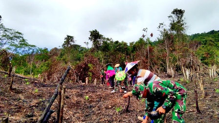SATGAS PAMTAS RI-MLY YONIF RAIDER 200/BHAKTI NEGARA POS APAUPING BANTU MASYARAKAT NUGAL MENANAM PADI