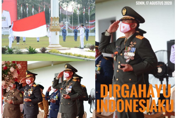 Pangdam II/Sriwijaya beserta Forum Koordinasi Pimpinan Daerah (Forkopimda) Prov. Sumsel menghadiri Upacara Hari Ulang Tahun (HUT) Ke-75 Kemerdekaan RI, tanggal 17 Agustus 2020.