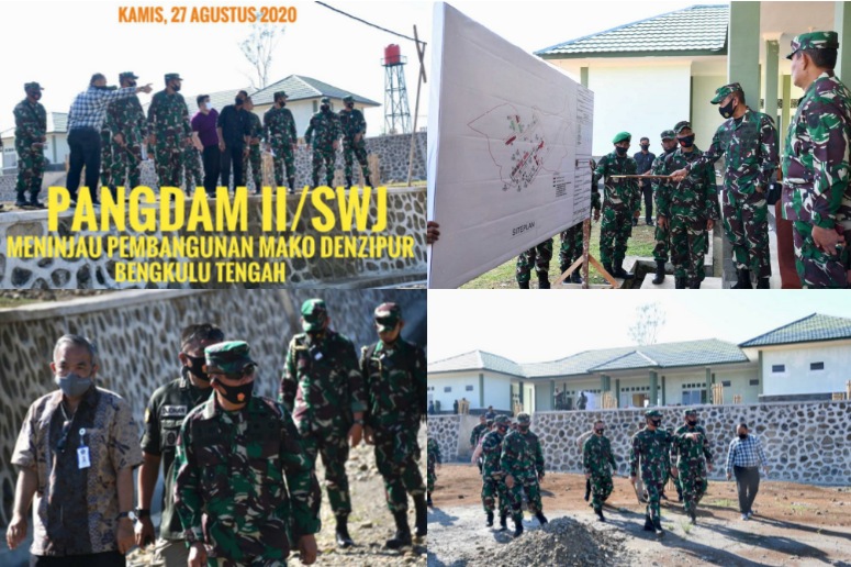Panglima Komando Daerah Militer (Pangdam) II/Sriwijaya Mayjen TNI Agus Suhardi dan rombongan, meninjau lokasi pembangunan Markas Detasemen Zeni Tempur (Denzipur) di Desa Karang Tengah, Kecamatan Taba Penanjung, Kabupaten Bengkulu Tengah (Benteng), Provinsi Bengkulu, Kamis (27/8/2020) untuk mengetahui sejauh mana pembangunan Markas Denzipur ini dilakukan.