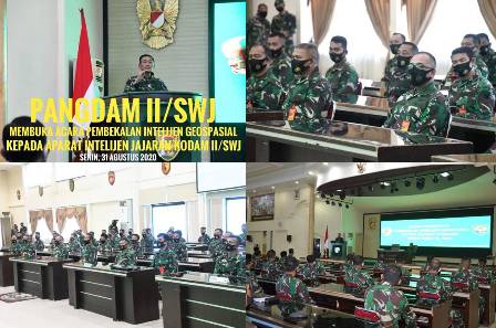 Kegiatan pembekalan yang berlangsung selama 7 hari tersebut diikuti sebanyak 45 Perwira Intelijen jajaran Kodam II/Swj dan dihadiri juga oleh Kasdam II/Swj Brigjen TNI Muhammad Zamroni, Kapok Sahli Pangdam II/Swj Brigjen TNI Puji Cahyono, S.I.P., beserta Para Perwira Staf Ahli Pangdam II/Swj, Asrendam II/Swj, Para Asisten Kasdam II/Swj dan Dan/Kabalakdam II/Swj beserta Waasintel Kasad Bidang Inteltek dan Hublu Brigjen TNI G. Taufan Gestoro selaku Ketua Tim beserta rombongan. Pangdam II/Swj Mayjen TNI Agus Suhardi dalam sambutannya menjelaskan bahwa, pembekalan yang akan dilaksanakan selama tujuh hari ini bertujuan untuk meningkatkan kualitas Apintel sampai dengan memahami dan mampu dalam membuat laporan Intelijen berbasis Geospasial guna mendukung tugas pokok TNI AD. “Intelijen Geospasial adalah suatu bentuk deteksi dini dan cegah dini dengan basis data Geospasial dalam rangka pengumpulan data yang akan digunakan sebagai bahan masukan bagi pengambil kebijakan aspek stabilitas nasional”, kata Pangdam. Pada akhir sambutannya, Pangdam mengingatkan kepada para peserta agar mengikuti kegiatan pembekalan dengan sungguh-sungguh dan penuh rasa tanggung jawab sehingga tujuan pembekalan ini guna meningkatkan kualitas Apintel dalam membuat laporan Intelijen berbasis Geospasial dapat tercapai. Sementara itu, dalam sambutan Asintel Kasad yang dibacakan oleh Waasintel Kasad Bidang Inteltek dan Hublu, Brigjen TNI G. Taufan Gestoro selaku Ketua Tim, menyampaikan ucapan selamat datang kepada para peserta pembekalan Intelijen Geospasial di Makodam ll/Swj dan ucapan terima kasih kepada Pangdam ll/Swj yang telah memberikan tempat dan fasilitas untuk penyelenggaraan pembekalan Intelijen Geospasial TA. 2020. Ia menjelaskan bahwa, pelaksanaan kegiatan pembekalan kali ini merupakan pembekalan lntelijen Geospasial pertama sejak diberlakukannya Orgas baru Sintelad. Pembekalan ini diperuntukkan bagil Perwira lntelijen di satuan jajaran TNI AD sehingga diharapkan seluruh aparat lntelijen memahami dan mampu mengaplikasikan lntelijen Geospasial di satuan, Brigjen TNI G. Taufan Gestoro juga mengatakankan bahwa, kemajuan teknologi informasi menuntut setiap Aparat lntelijen mampu beradaptasi dengan perkembangan saat ini, apalagi dihadapkan dengan teknologi yang sudah semakin modern. Dihadapkan dengan pembuatan Iaporan intelijen berbasis Geospasial masih banyak personel yang belum mengetahui mengaplikasikan teknologi berbasis Geospasial menjadi sebuah informasi yang bernilai intelijen. “Siintelad menilai kegiatan pembekalan Intelijen Geospasial saat ini menjadi penting dengan harapan Apintel yang ada di seluruh satuan mampu melaksanakan kegiatan pembuatan laporan dan saran intelijen berbasis Geospasial secara optimal guna mendukung tugas pokok”, terangnya. Mengingat materi yang akan diberikan kepada para peserta merupakan materi yang baru, Brigjen TNI G. Taufan mehimbau para peserta pembekalan agar memperhatikan dengan seksama apa yang disampaikan pengajar sehingga mampu dalam mengaplikasikannya dalam tugas sehari-hari di lapangan. “Saya sangat berharap agar seluruh peserta pembekalan dapat memanfaatkan kegiatan pembekalan ini secara maksimal dan manfaatkan waktu yang baik ini hanya untuk belajar dan berlatih dengan sungguh-sungguh”, ujarnya.