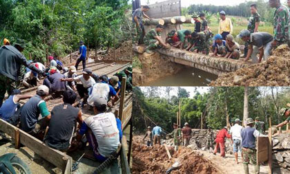 PRAJURIT KODIM 0427/WAY KANAN DAN MASYARAKAT KAMPUNG SIMPANG TIGA KEC. REBONG TANGKAS KAB.WAY KANAN PROVINSI LAMPUNG BANGUN DESA LEBIH MAJU DAN SEJAHTERA.