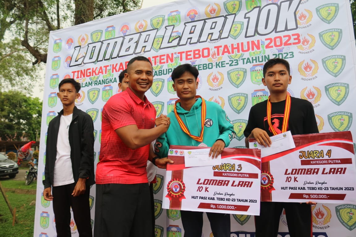 Kegiatan lari 10 K ini dilepas oleh PJ Bupati Tebo, H. Aspan, S.T, kegiatan start dimulai dari Pendopo Rumah Dinas Bupati Tebo dan finish di Lapangan Merdeka Kelurahan Muara Tebo Kecamatan Tebo Tengah Kabupaten Tebo, Sabtu (09/12/2023).