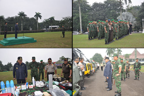 Palembang, (Pendam II/Swj). Apel kesiap siagaan Penanggulangan bencana alam terutama dalam mengantisipasi bencana banjir dan tanah longsor di daerah Sumatera Selatan dilaksanakan hari ini Senin 27 Januari 2014, bertempat di Griya Agung jalan. Demang Lebar Daun Palembang, dengan Inspektur upacara Gubernur Provinsi Sumatera Selatan H. Alex Nurdin dan dilanjutkan dengan pengecekan kesiapan pasukan.