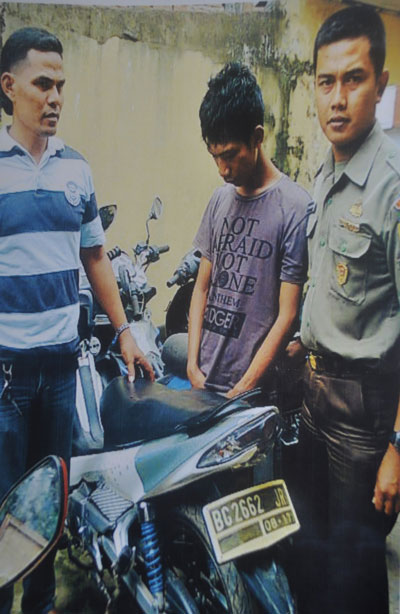 Palembang, (Pendam II/Swj). Babinsa Talang Jambe Koramil 418-07/Sukarame Serka Zainal Abidin berhasil menggagalkan aksi nekad Ardiansyah warga jalan Kedukan I Tangga Buntung Kelurahan 35 Ilir Kecamatan Ilir barat II Palembang, saat hendak mencoba mencuri sepeda motor yamaha Yupiter Z milik Abdulah di KM 14 Kelurahan Tanah Mas.