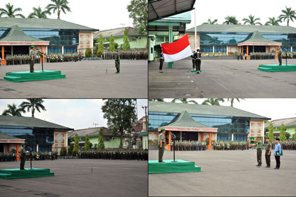 Demikian dikatakan Panglima TNI Jenderal TNI DR. Moeldoko dalam amanat tertulis yang dibacakan Staf Ahli Pangdam II/Swj bidang Iptek dan Lingkungan Hidup Kolonel Inf Riswan pada upacara bendera tujuhbelasan (17/4/2014), di Makodam II/Swj, Palembang. Lebih lanjut dikatakan bahwa dalam konteks mengamankan jalannya Pemilu, guna menjaga stabilitas, TNI telah mengerahkan kekuatan 35.029 personel yang berada dalam posisi siaga penuh hingga berakhirnya tahapan Pemilu 2014, yang diformat dalam tiga lapisan kekuatan. Panglima TNI juga menginstruksikan kepada seluruh jajaran TNI agar tidak ragu-ragu dalam mengantisipasi kecenderungan perkembangan situasi bagi jalannya demokrasi. “Pedomani kebijakan format pengerahan kekuatan dalam tugas pengamanan Pemilu, serta patuhi prinsip penugasan yang bersifat penebalan, prinsip tidak ada pembagian sektor dan prinsip tidak kontak langsung”, tegas Panglima TNI. Pada bagian lain, Panglima TNI mengingatkan kepada seluruh prajurit TNI bahwa komando kendali TNI sepenuhnya berada ditangan Panglima TNI, sehingga tidak ada prajurit TNI yang blok-blokan terhadap aliran politik apapun. “Tetap pada komitmen netralitas TNI, jaga soliditas dan jangan terpengaruh provokasi klasik, yang dimainkan kelompok kepentingan tertentu, serta senantiasa menjaga kesiapsiagaan satuan sesuai posisi siaga penuh yang telah ditetapkan”, tandas Panglima TNI. Upacara bendera tujuhbelasan yang ditandai dengan pengibaran bendera merah putih, pembacaan Pembukaan UUD tahun 1945, pengucapan Sapta Marga dan Pembacaan Panca Prasetia Korpri tersebut berlangsung dengan tertib dan khitmad serta diikuti oleh para Pejabat Teras dan Kabalak jajaran Kodam II/swj serta segenap prajurit dan PNS Kodam II/Swj.
