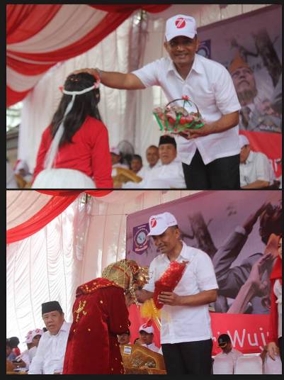 DANREM MENERIMA HAND BUCKET DARI PESERTA PAWAI KEMERDEKAAN