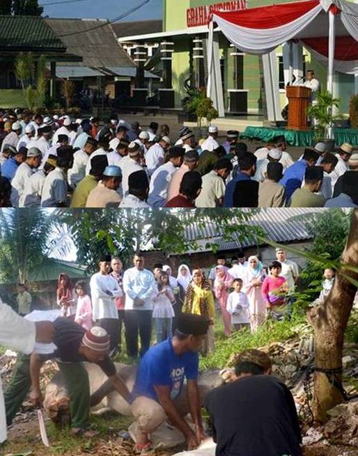 KOREM 043/GATAM SELENGARAKAN SHOLAT IDUL ADHA DAN POTONG QURBAN BERSAMA WARGA