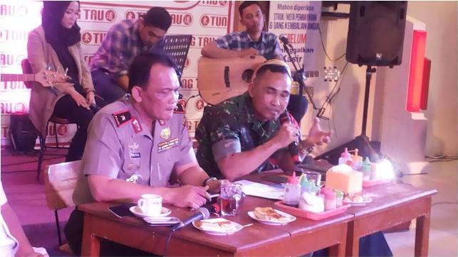 Pangkalpinang (Penrem 045/Gaya) Danrem 045/Gaya Kolonel Inf Tjaturputra Gunadi Genah melaksanakan dialog kebangsaan di warung kopi tung tau Pangkalpinang. Senin 21/11/2016