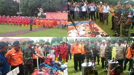 Apel gelar pasukan ini diikuti oleh 1.214 orang yang terdiri dari anggota TNI, Polri, BPBD Kab. OKI, Disdik, Disbunak, Dinkes, RSUD, Puskesmas Kayuagung dan Kotaraya, Dinsos, Sat Pol PP, Manggala Agni, Pramuka dan Kades serta perwakilan 24 Perusahaan yang ada di wilayah Sumsel. Dalam sambutannya Bupati OKI meminta agar pada 2017 tidak terjadi lagi kebakaran hutan dan lahan, cukuplah peristiwa pada tahun 2015 sebagai pelajaran bagi kita semua, betapa sulitnya untuk mengantisipasinya. “Saya rasa kita semuanya yang ada di sini, kebakaran tahun 2015 mengingatkan kita, saat itu betul-betul kita kerja keras dibuatnya, namun karena api sudah menjalar dan sudah membesar segala cara yang kita lakukan menjadi sulit” katanya. “Kita juga sama-sama tahu dampak dari kebakaran hutan dan lahan pada tahun 2015, tidak terhitung berapa banyak kerugian yang kita alami kerugian karena dampak dari aktivitas ekonomi yang berhenti, dampak gangguan kesehatan dan hilangnya habitat keragaman hayati yang tidak bisa dihitung secara ekonomi, oleh sebab itu kita semuanya harus antisipasi jangan sampai peristiwa kebakaran tahun 2015 terulang lagi pada tahun 2017 ini,” harapnya. Disisi lain Komandan Korem 044/Gapo di sela-sela apel menyampaikan kegiatan yang dilaksanakan dengan melibatkan banyak pihak ini, untuk memastikan kesiapan semua pihak yang terlibat dalam pencegahan kebakaran hutan dan lahan. Dijelaskannya, Korem beserta jajarannya bersama BPBD dan didukung oleh pihak lain, akan bersama-sama memulai secara dini melakukan kesiapan menjaga wilayah Sumsel agar tidak terjadi kebakaran hutan dan lahan seperti yang terjadi pada tahun 2015 lalu, dan diharapkan dengan kegiatan ini akan diketahui kesiapan masing-masing instansi yang terlibat dalam operasi penanggulangan Karhutla 2017, sehingga kebakaran tidak akan terjadi lagi,” katanya. Lebih lanjut ia menambahkan, setelah apel gelar pasukan ini, kegiatan akan dilanjutkan dengan kegiatan latihan praktek lapangan secara tekhnis cara memadamkan kebakaran, hal ini dilakukan untuk melatih kesiapan dari setiap instansi sesuai tanggungjawabnya masing-masing.