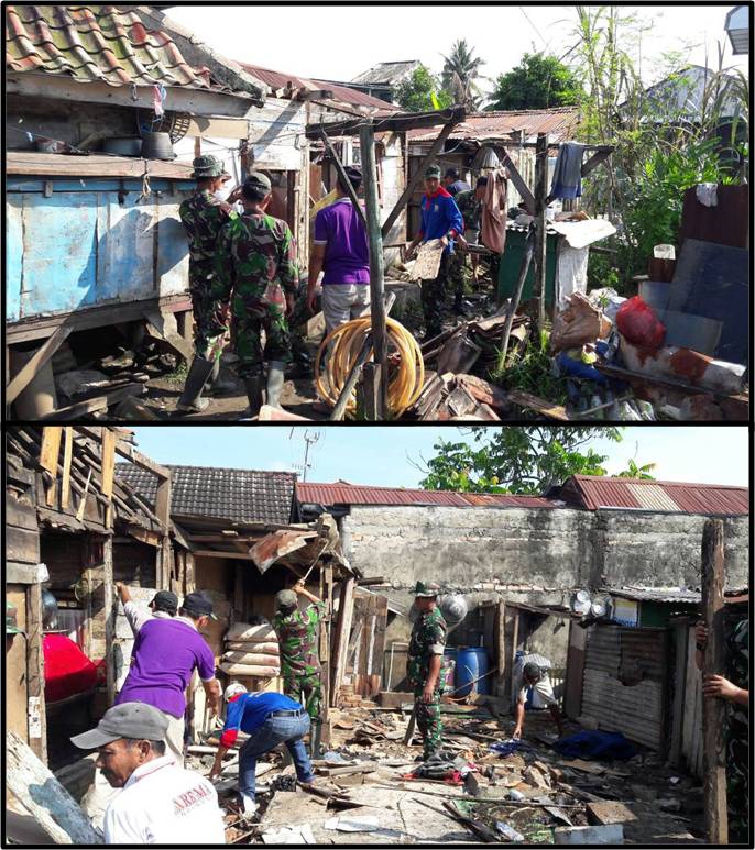 Penrem 044/Gapo, 12 Mei 2017 Kodim 0418/Palembang mendukung kegiatan bedah rumah untuk kaum dhu'afa yang diprakarsai oleh Komunitas Peduli Lingkungan Kota Palembang (KPLKP) terhadap rumah milik Bapak Dedi bertempat di Lorong Melati 2 RT.15 Kel. 2 Ilir Kec. Ilir Timur II Kota Palembang.