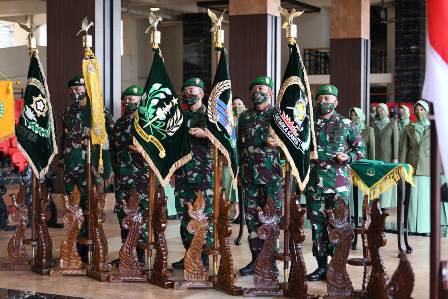 Pendam II/Sriwijaya JAKARTA, tniad.mil.id - Kepala Staf Angkatan Darat (Kasad) Jenderal TNI Andika Perkasa memimpin Acara Serah Terima Jabatan (Sertijab) tujuh jabatan dan menerima penyerahan dua jabatan penting lainnya di jajaran TNI Angkatan Darat bertempat di Lantai Dasar Gedung E Markas Besar Angkatan Darat, Jakarta, Kamis (6/8/2020).