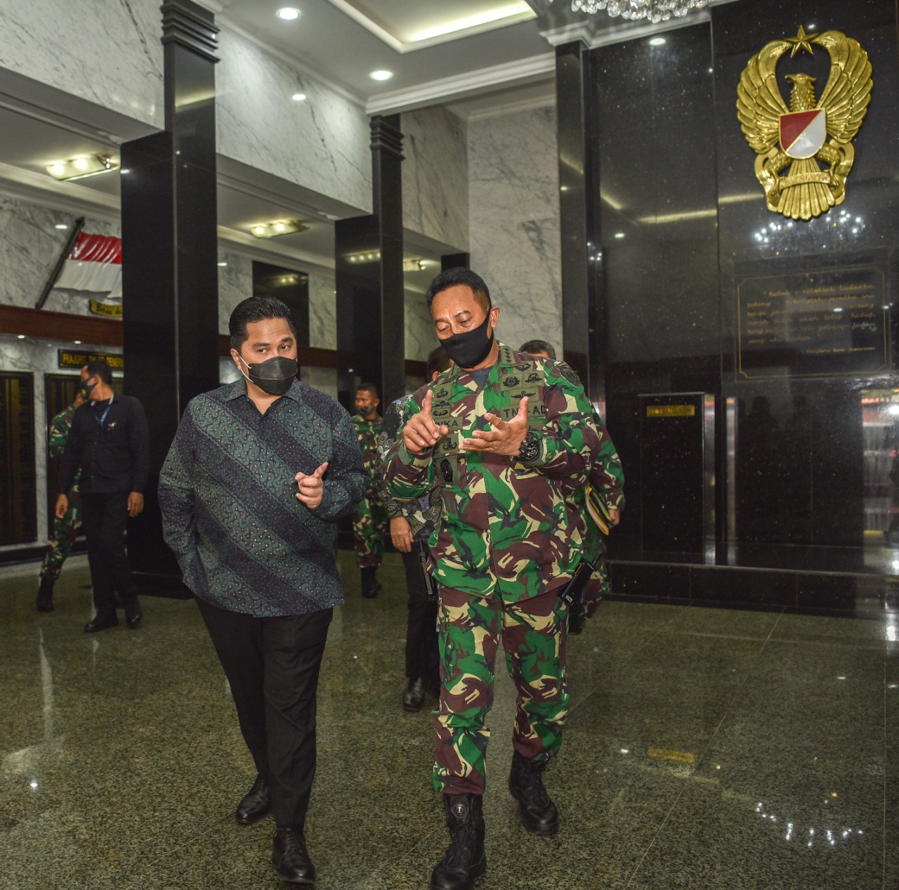 Pendam II/Sriwijaya Menteri BUMN, Erick Thohir dan KSAD Jenderal Andika Perkasa, usai bertemu di Markas TNI AD, Provinsi DKI Jakarta, Jumat (7/8/2020). kemaren