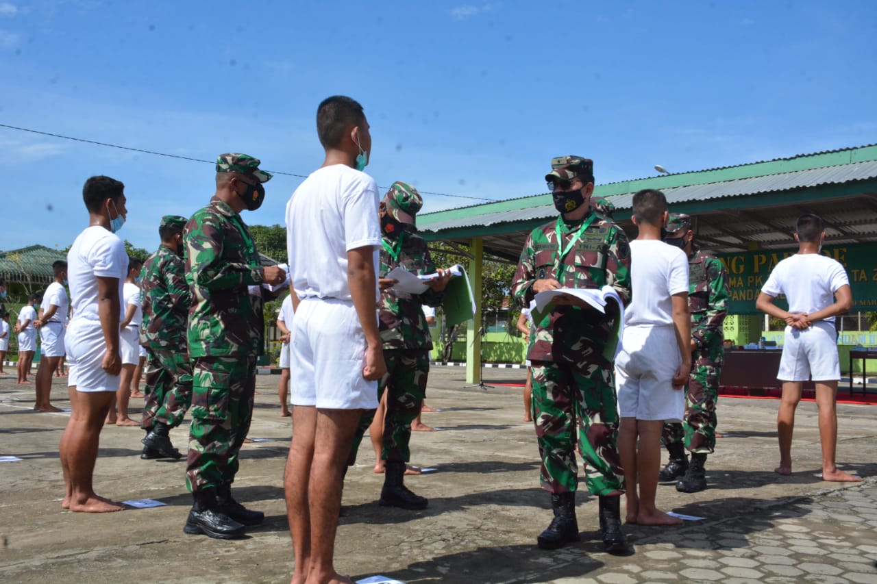 Sebanyak 442 Calon Tamtama PK TNI AD Gelombang - I Tahun Anggaran 2021 Sumber Reguler Tingkat Panitia Daerah (Panda) Palembang mengikuti Sidang Parade yang dilangsungkan di Lapangan Apel Ajendam II/Swj Sekojo, Palembang, Jum'at (19/3/2021). Pelaksanaan Sidang Parade penerimaan Calon Tamtama ini dipimpin Kepala Staf Kodam (Kasdam) II/Sriwijaya Brigjen TNI Muhammad Zamroni.