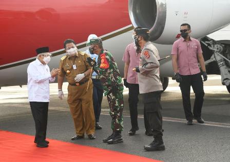 Palembang, (Pendam II/Sriwijaya). Pangdam II/Sriwijaya Mayjen TNI Agus Suhardi menyambut dan memimpin Pengamanan VVIP Kunjungan Kerja (Kunker) Wakil Presiden (Wapres) RI KH. Ma'ruf Amin ke Provinsi Lampung dalam rangka meninjau kegiatan Vaksinasi massal dan meninjau Pembangunan Bendungan Way Sekampung Bandar Rejo Kab. Pringsewu Prov. Lampung, Senin (22/3/2021).