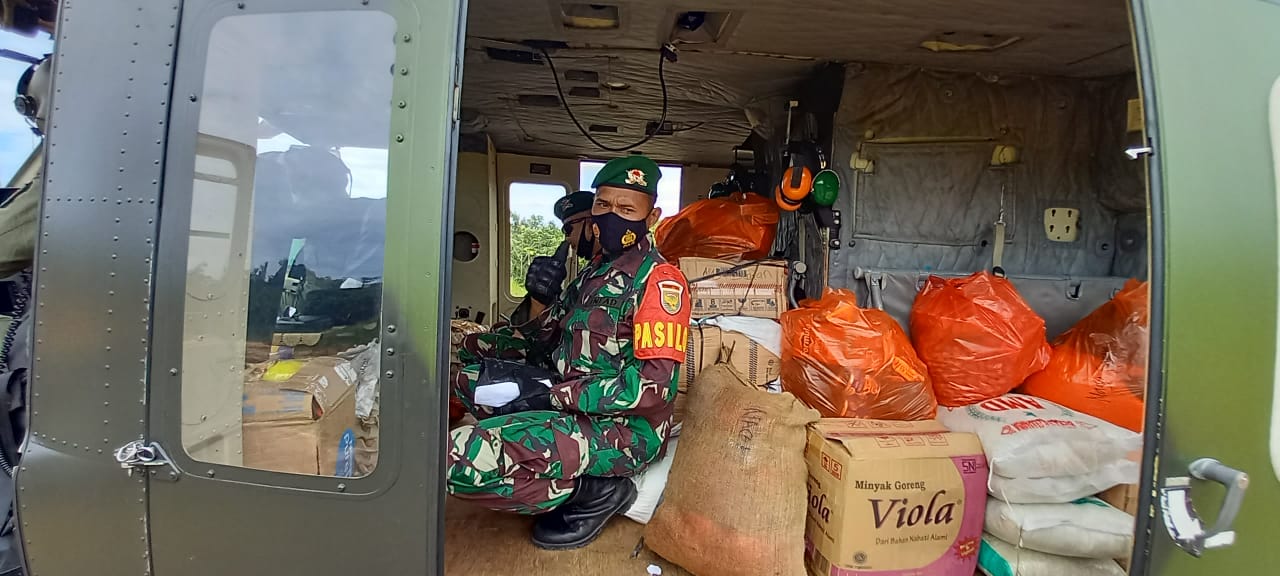 SENANING. Salah satu Pengiriman Bekal dalam satgas Pamtas RI-MALAYSIA dengan menggunakan Helicopter di desa Senaning Kecamatan Ketungau Hulu Kabupaten Sintang Kalimantan Barat. minggu (13/06/2021)