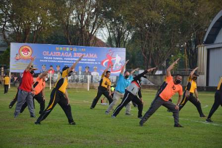 Turut hadir dalam kegiatan olahraga bersama tersebut antara lain, Gubernur Sumsel, H. Herman Deru, Kapolda Sumsel Irjen Pol Prof. Dr. Eko Indra Heri S, M.M., Wakapolda Sumsel, Brigjen Pol Rudy Setiawan, Danrem 044/Gapo Brigjen TNI Jauhari Agus Suraji, S.Sos., S.I.P., Kepala BNN Prov. Sumsel Brigjen Joko Prihadi, S.H., Danlanud Palembang, Kolonel Pnb Hermawan Widhianto, S.E., M.M., Danlanal Palembang, Mayor laut ( S ) M Ramadan, Kepala DPRD Prov. Sumsel, H. RA. Anita Noeringhati, Kepala Pengadilan Tinggi Palembang Dr. Kresna Menon, S.H., M.Hum., dan para pejabat Polda Sumsel. Mengawali kegiatan olahraga tersebut, seluruh peserta melaksanakan Senam Aerobik. Setelah itu kegiatan dilanjutkan dengan olah raga Sepak Bola dan Bola Volli. Setelah melaksanakan kegiatan olahraga Sepak Bola dan Bola Volli, para peserta melaksanakan Sarapan Pagi dilanjutkan Mancing Mania. Kegiatan seru ini menunjukkan kebersamaan dan sinergitas yang harmonis antara TNI, Polri dan Aparatur Pemerintah Daerah Provinsi Sumsel. Selama melaksanakan Olahraga Bersama Forkopimda Prov. Sumsel berlangsung dengan tertib, aman dan berjalan lancar. Kapendam II/Swj Kolonel Caj Drs. Jono Marjono mengatakan bahwa, selain dalam rangka memeriahkan HUT Bhayangkara Ke-75, kegiatan olahraga bersama ini dilaksanakan guna untuk menjaga kesehatan tubuh, membentuk imun yang kuat agar tetap segar bugar sehingga terhindar dari virus Covid-19. "Selama kegiatan berlangsung para peserta tetap memperhatikan dan menjalankan Protokol Kesehatan Covid-19", kata Kapendam.