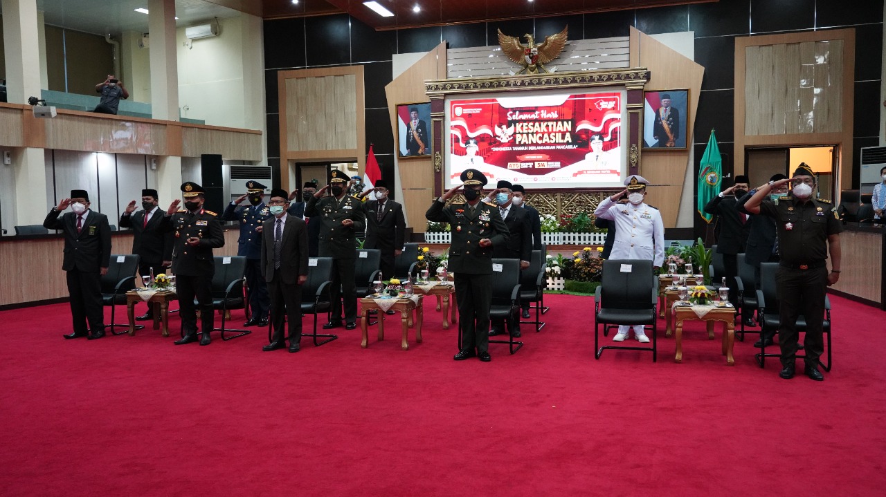 Segenap pemangku kepentingan mulai Institusi TNI, Polri dan Pemerintah Daerah hingga Lembaga Pendidikan ikut serta dalam upacara peringatan Hari Kesaktian Pancasila Tahun 2021 ini, meski dilakukan secara virtual.