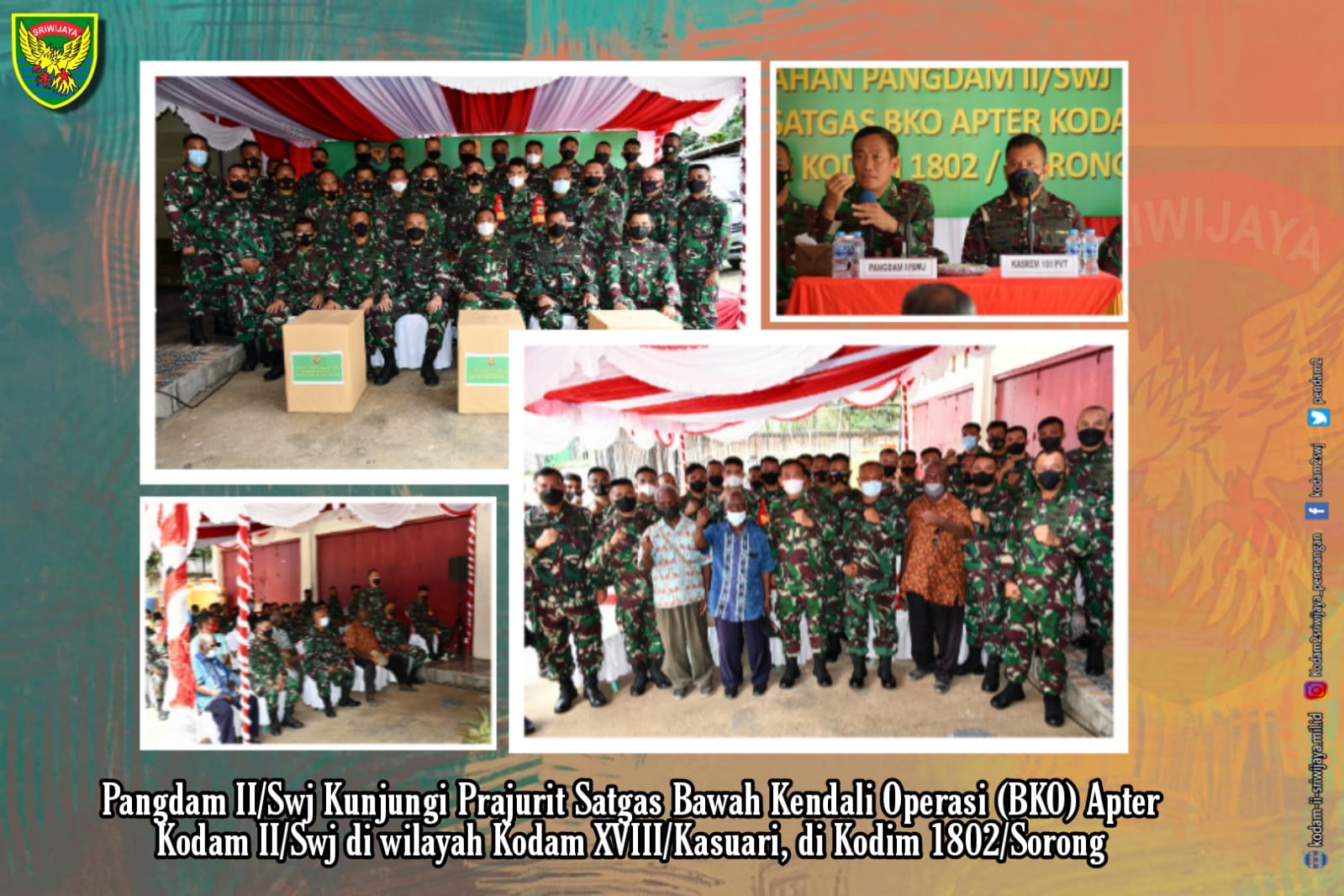 Dalam kunjungannya tersebut, Pangdam II/Swj memberikan bingkisan atau tali asih sebagai bentuk perhatian kepada para personel Satgas BKO Apter Kodam II/Swj yang sedang bertugas di wilayah Kodam XVIII/Kasuari, Papua.
