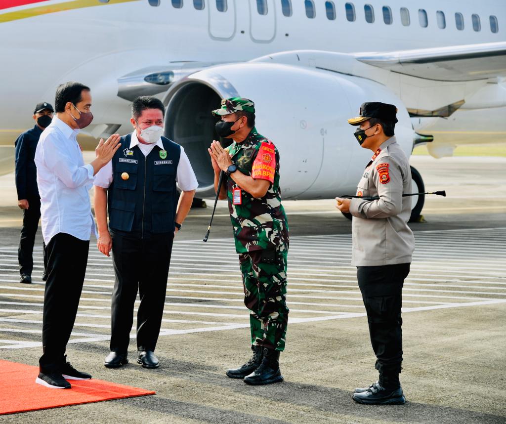 Pangdam II/Sriwijaya Mayjen TNI Agus Suhardi bersama Gubernur dan Kapolda Sumsel menyambut sekaligus mendampingi Presiden RI Joko Widodo, dalam rangka melakukan kunjungan kerja (kunker) ke Kabupaten Muara Enim dan Pagar Alam, Sumatera Selatan, Senin (24/1 2022). Dalam kunjungan tersebut Presiden RI Joko Widodo didampingi Sekretaris Kabinet dan sejumlah Menteri Kabinet, diantaranya Menteri Energi Sumber Daya dan Mineral, Menteri BUMN dan Menteri Investasi .
