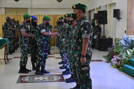 Adapun keempat jabatan Perwira Menengah (Pamen) Kodam II/Swj yang diserah terimakan tersebut adalah, jabatan Dandenmadam II/Swj, dari Kolonel Inf Nanang Prianggodo, S.Sos., M.A.P., kepada Kolonel Inf Sahrul Haq, Kaajendam II/Swj, dari Kolonel Caj Suparno, S.Sos., kepada Letnan Kolonel Caj Hadi Suryono, Kabekangdam II/Swj, dari Kolonel Cba Roni Kurniawan, S.H., M.I.Pol., kepada Kolonel Cba Fajar Raharjo, S.E., M.M., dan Kababinminvetcaddam II/Swj, dari Kolonel Inf Sahrul Haq kepada Letnan Kolonel Inf Seprianizar, S.Sos. Acara Sertijab tersebut dihadiri sejumlah pejabat Kodam II/Swj secara terbatas, antara lain, Kasdam II/Sriwijaya Brigjen TNI Gumuruh Winardjatmiko, S.E., M.B.A., Irdam II/Swj, Kapok Sahli Pangdam II/Swj, dan Danrem 044/Gapo. Selanjutnya, Asrendam II/Swj, para Asisten Kasdam II/Swj, Perwira LO TNI AL dan LO TNI AU, para Dan/Kabalakdam II/Swj dan Ketua Persit dan Wakil Ketua Persit KCK PD II Sriwijaya. Mengawali sambutannya, Pangdam II/Swj Mayjen TNI Agus Suhardi mengucapkan selamat kepada Kolonel Cba Fajar Raharjo, S.E., M.M., Letnan Kolonel Caj Hadi Suryono, Letnan Kolonel Inf Seprianizar, S.Sso., dan Kolonel Inf Sahrul Haq, beserta Istri, atas kepercayaan yang diberikan oleh pimpinan untuk mengemban amanah sebagai Kabekangdam II/Swj, Kaajendam II/Swj, Kababinminvetcaddam II/Swj dan Dandenmadam II/Swj. "Sikapi amanah ini dengan rasa syukur, disertai tekad untuk melaksanakan tugas dan tanggung jawab jabatan dengan sebaik-baiknya yang dilandasi ketulusan dan keikhlasan. Saya yakin dan percaya dengan berbekal pengalaman di berbagai penugasan dan jabatan sebelumnya, akan mampu melaksanakan tugas tanggung jawabnya dengan lebih berhasil", tegas Pangdam. Selanjutnya Pangdam juga mengucapkan terima kasih dan penghargaan yang tulus kepada Kolonel Inf Nanang Prianggodo, S.Sos., M.A.P., Kolonel Caj Suparno, S.Sos., dan Kolonel Cba Roni Kurniawan, S.H., M.I.Pol., atas dedikasi dan pengabdian yang diberikan selama bertugas di Kodam II/Swj. "Jadikan pengalaman tugas tersebut sebagai bekal untuk terus berkarya serta berkreasi dalam pengabdiannya di tempat tugas yang baru', ujarnya. Diakhir sambutannya, Pangdam juga menyampaikan ucapan selamat dan terima kasih kepada para istri yang telah dengan setia mendampingi langkah pengabdian para suami dalam penugasannya serta membantu membina organisasi Persit Kartika Chandra Kirana di satuannya masing-masing. Pelaksanaan acara Sertijab kali ini diselenggarakan dengan sederhana dan tetap mengacu pada Protokol Kesehatan (Prokes) yang ketat guna mencegah penyebaran Covid-19.