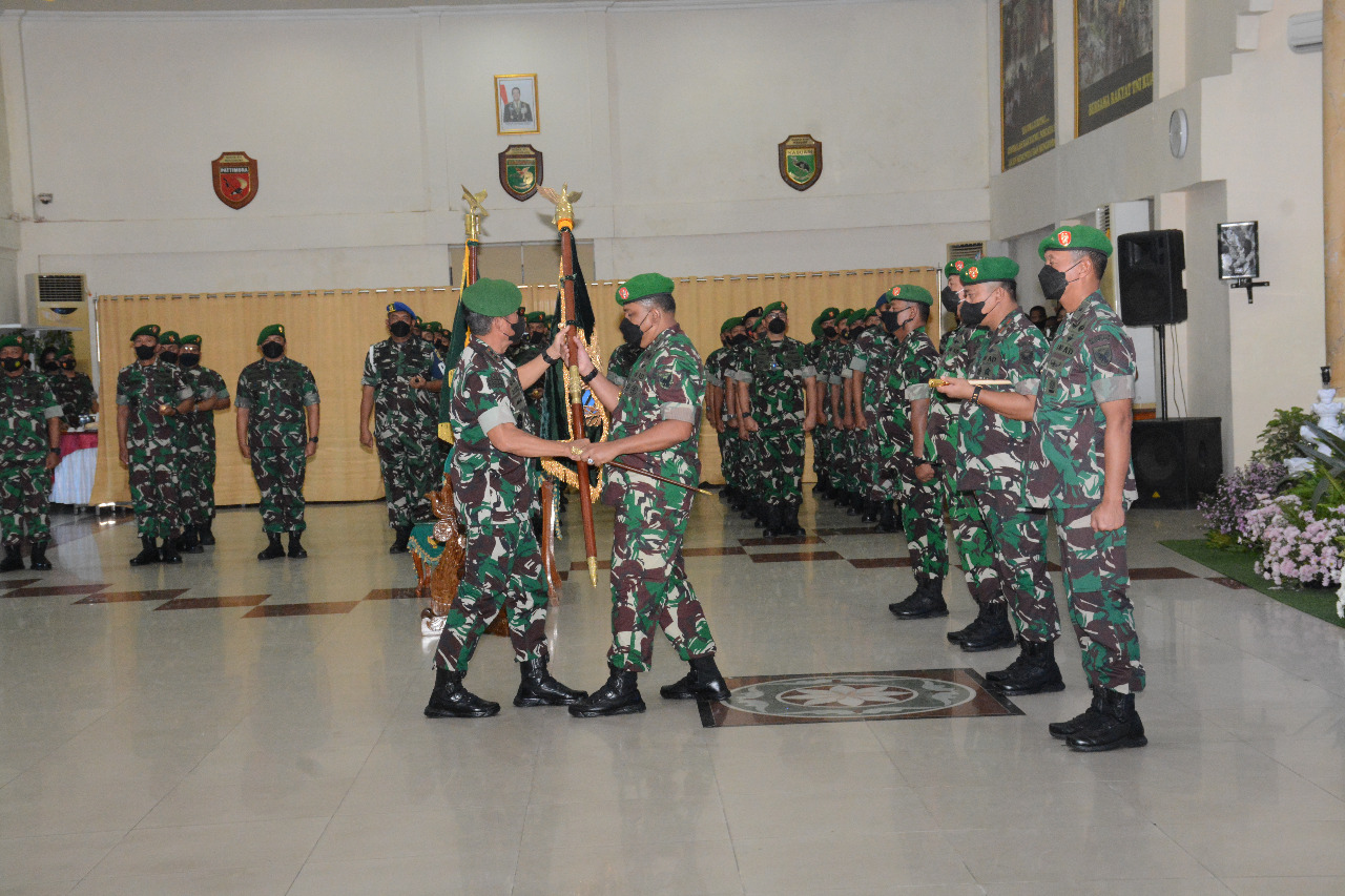 Panglima Kodam II/Sriwijaya Mayjen TNI Agus Suhardi, memimpin langsung Acara Serah Terima Jabatan (Sertijab) dan Lepas Sambut Tiga Pejabat jajaran Kodam II/Swj yang diselenggarakan di Gedung Sudirman Makodam II/Sriwijaya Jln. Jenderal Sudirman KM 2,5 Palembang, Selasa (15/2/2022).